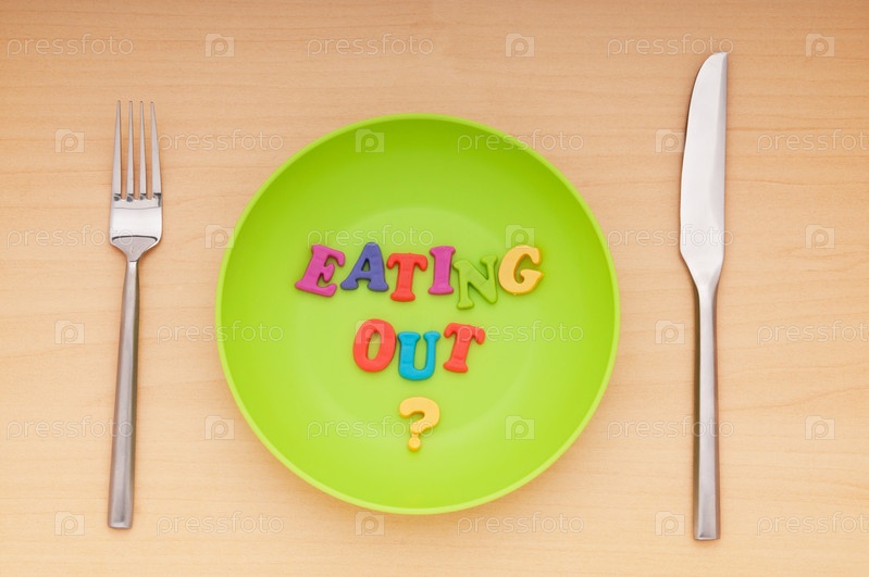 Тарелка с буквами, вилка и нож