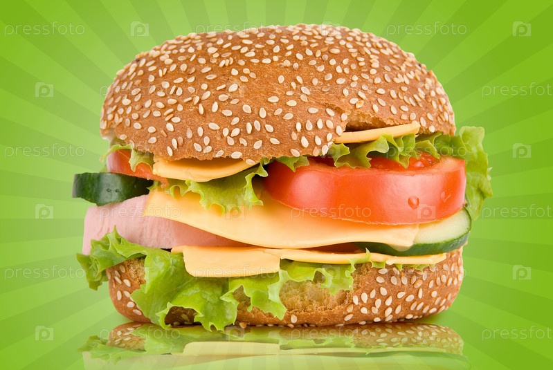 Гамбургер на зеленом фоне