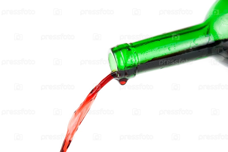 Красное вино, льющееся из бутылки