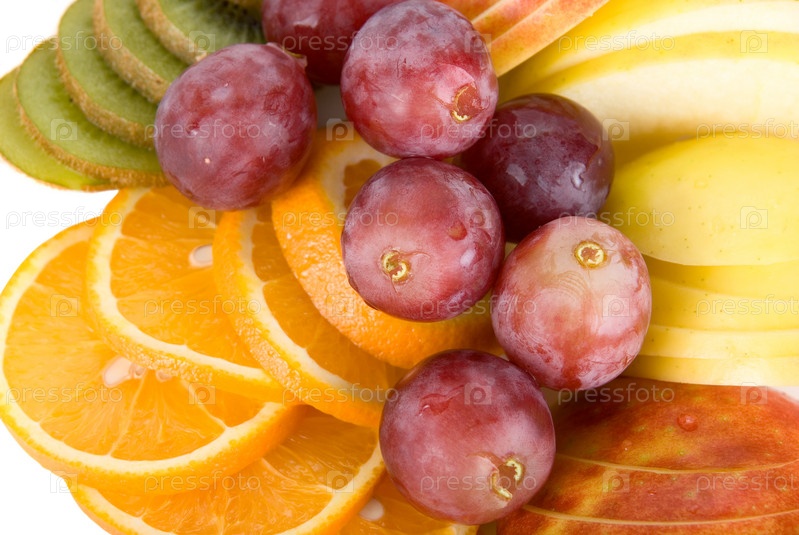 Фруктовое ассорти крупным планом на белом фоне