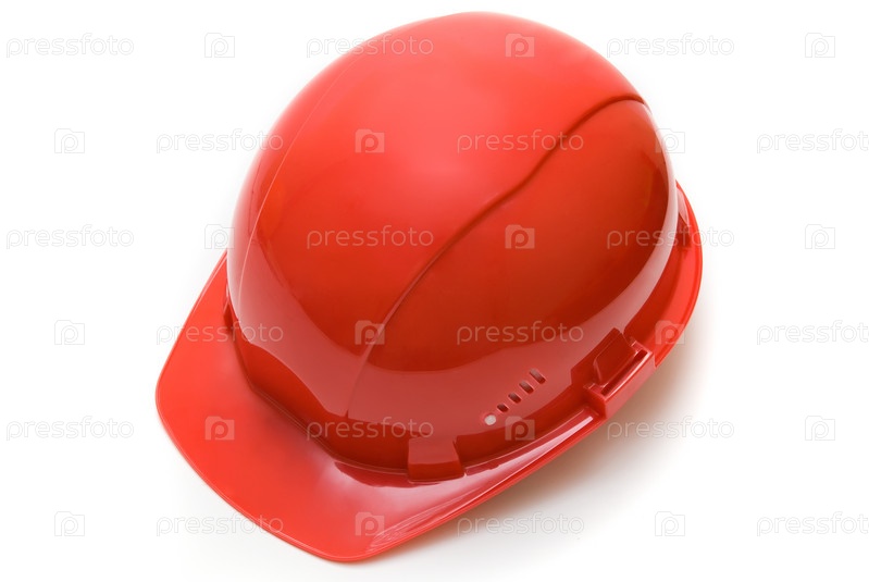 Красная каска на белом фоне