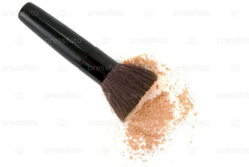 Кисть и пудра на белом фоне