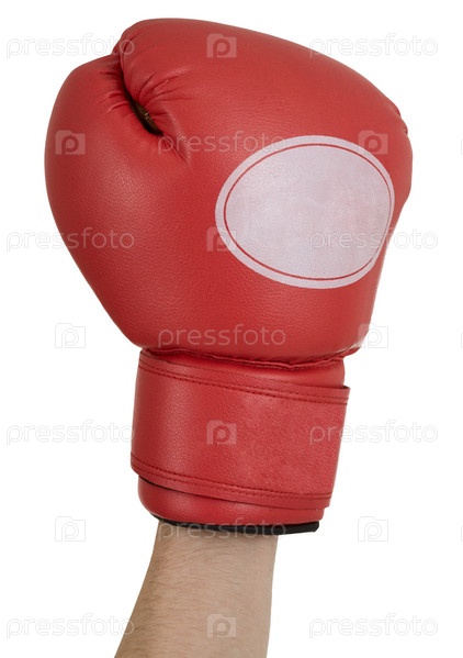 Рука в красной боксерской перчатке на белом фоне