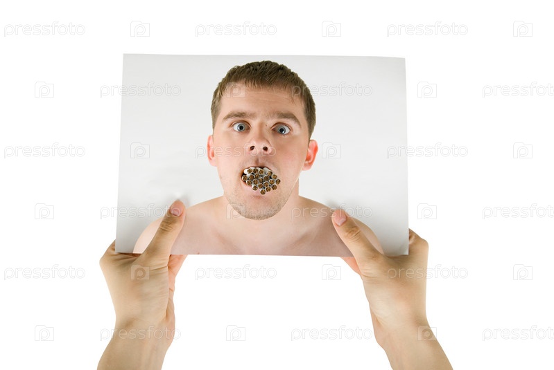 Девушка держит фотографию молодого человека с большим количеством сигарет во рту