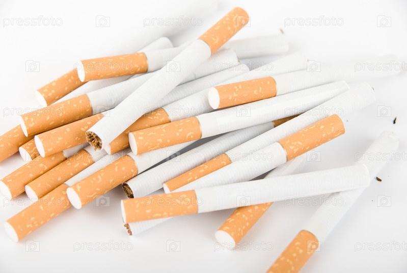 Большое количество сигарет на белом фоне