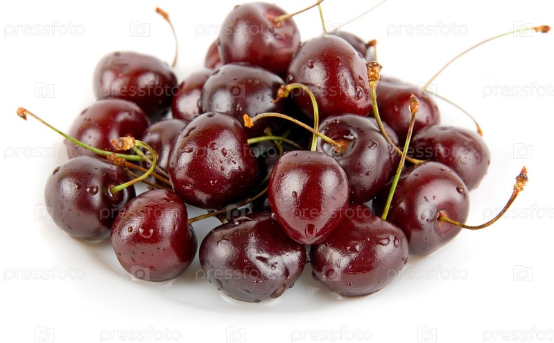 Спелые вишни на белом фоне