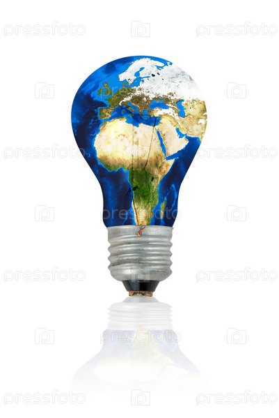 Земля в виде лампочки на белом фоне