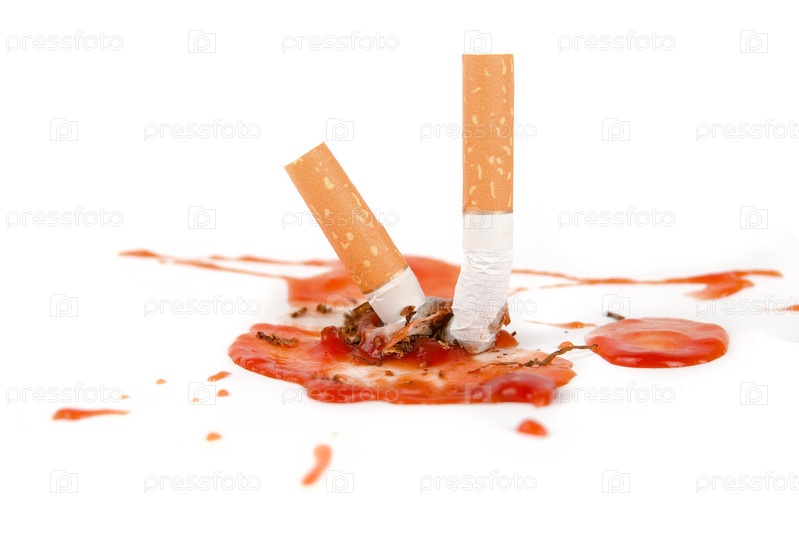 Две потушенные сигареты и кровь на белом фоне