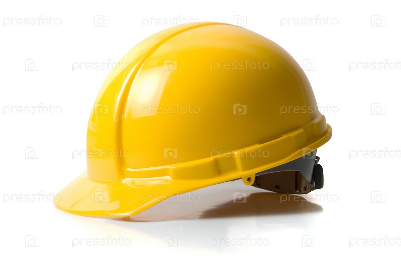 Желтая строительная каска изолирована на белом фоне