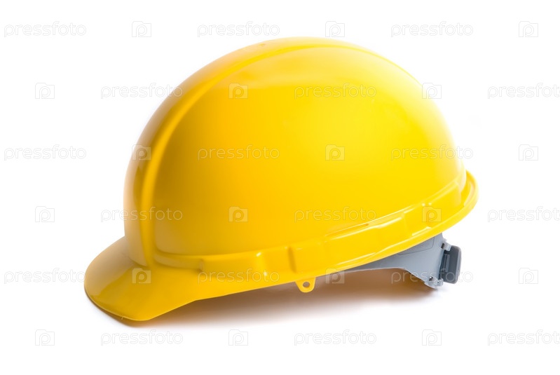 Желтая строительная каска изолирована на белом фоне