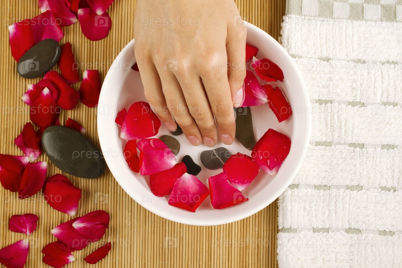Спа-процедура для рук с лепестками роз