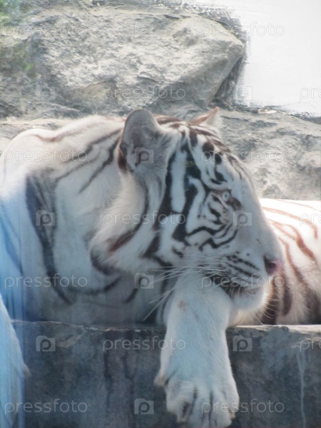 Белый тигр в зоопарке