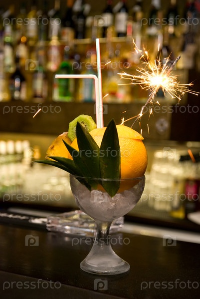 Коктейль с искрами на барной стойке