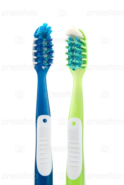 Две разноцветные зубные щетки