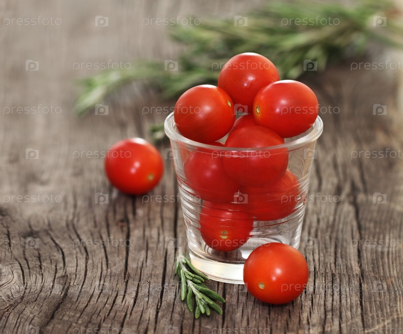 Красные помидоры черри на деревянном столе