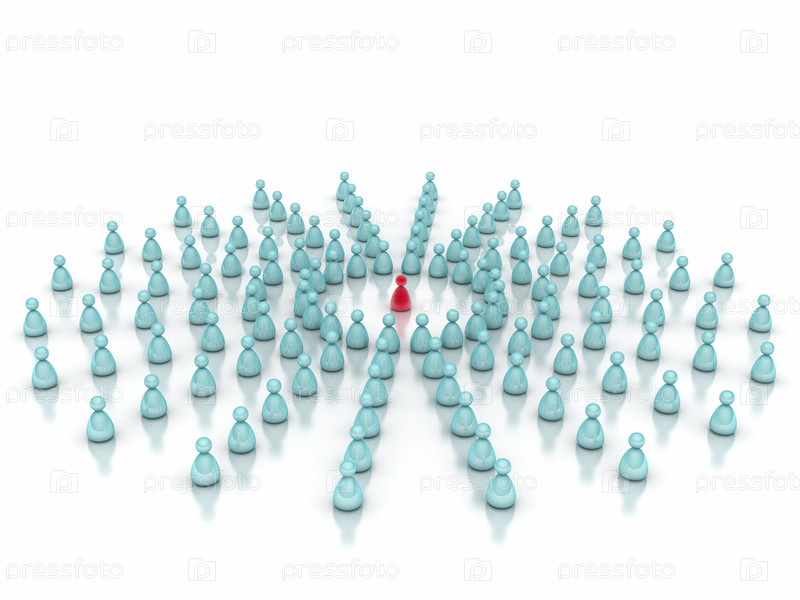 Лидер в толпе, концептуальная иллюстрация на белом фоне