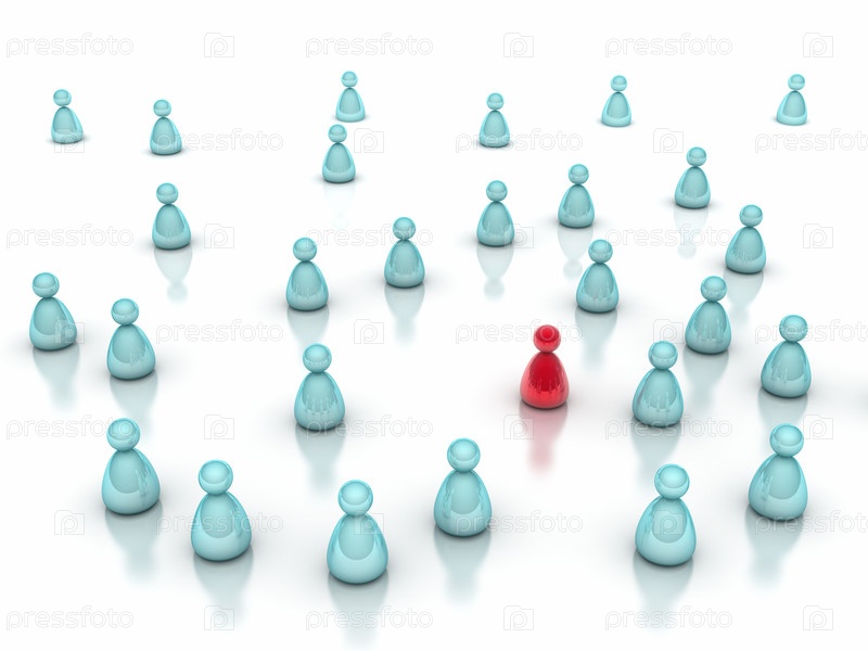 Лидер в толпе, концептуальная иллюстрация на белом фоне