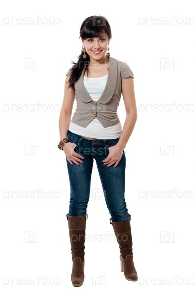 Симпатичная брюнетка на белом фоне