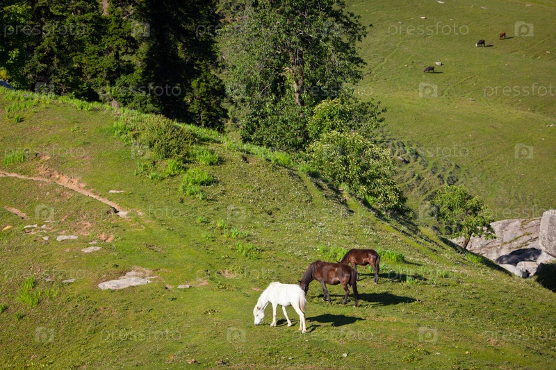 Лошади пасутся в горах
