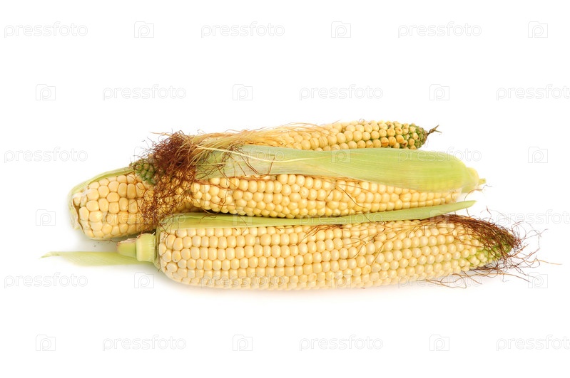 Свежая кукуруза в початках на белом фоне