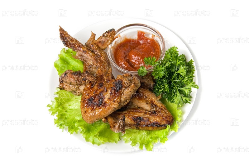 Жареные куриные крылышки с соусом и зеленью