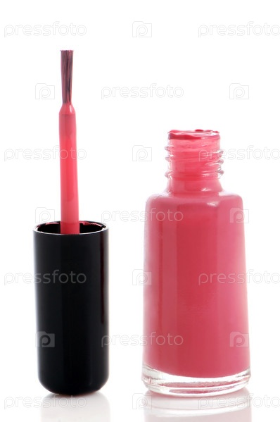 Розовый лак для ногтей на белом фоне