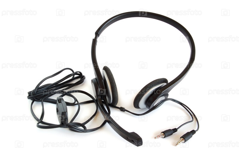Черные наушники с микрофоном на белом фоне