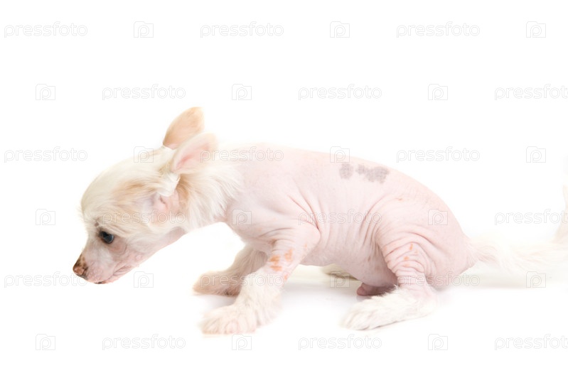 Щенок китайской хохлатой на белом фоне