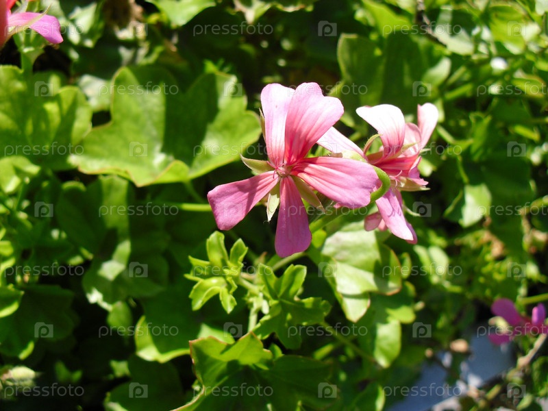 Розовые цветы на клумбе