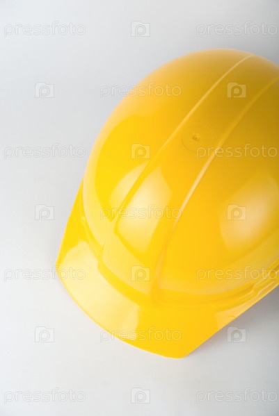 Желтая каска на сером фоне