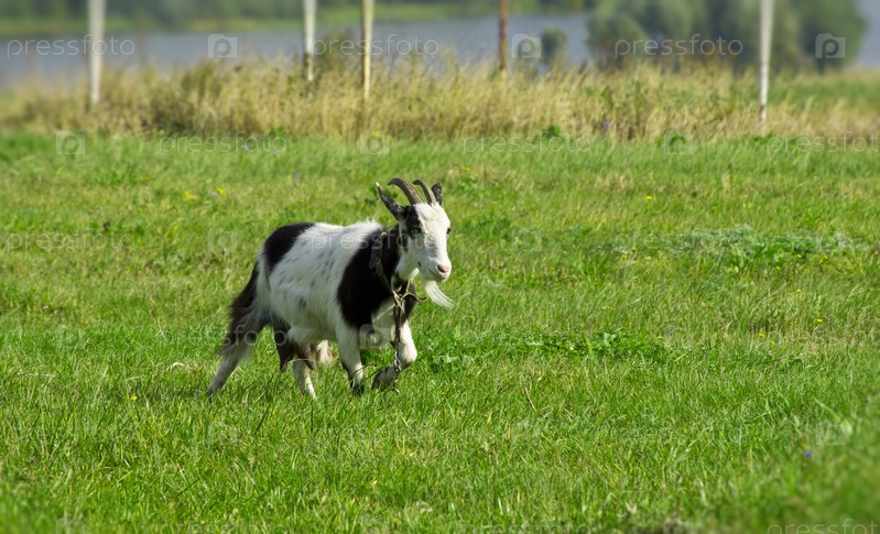Коза на зеленом лугу