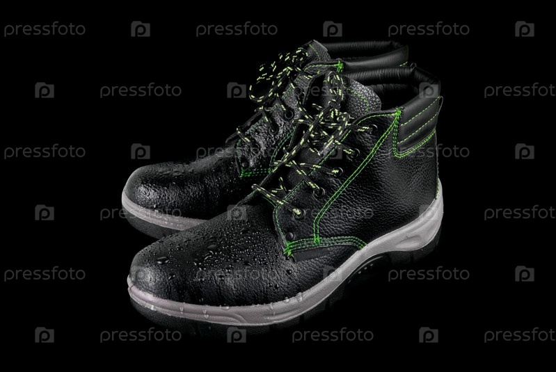 Рабочие ботинки на черном фоне