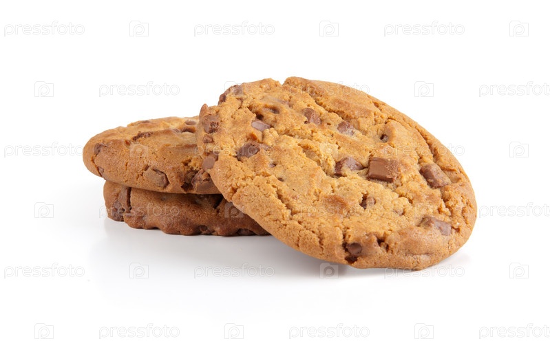 Печенье с кусочками шоколада на белом фоне