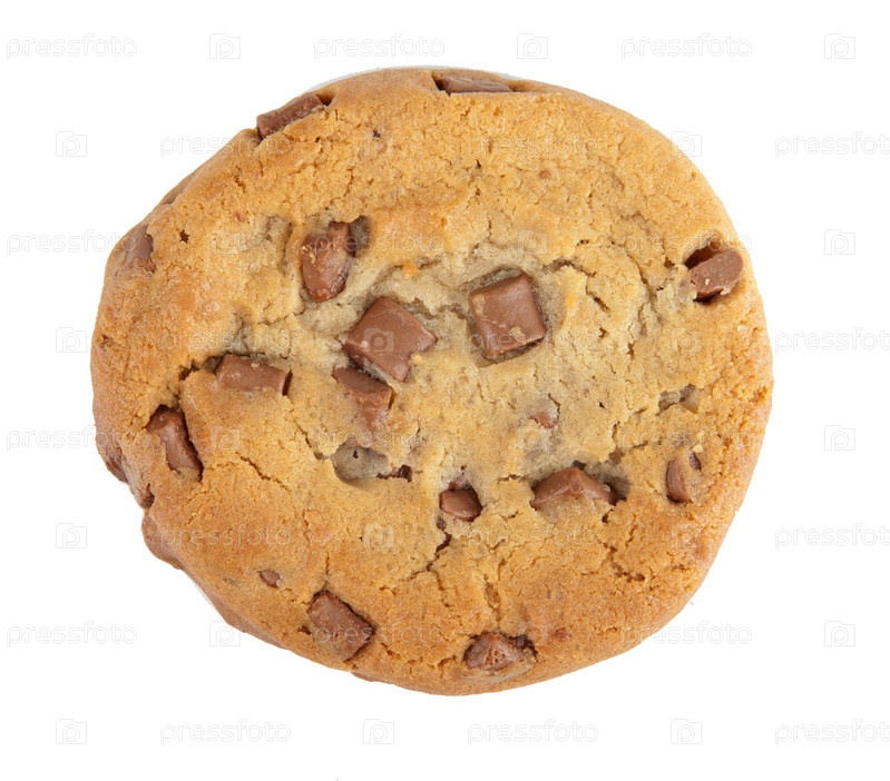 Печенье с кусочками шоколада на белом фоне