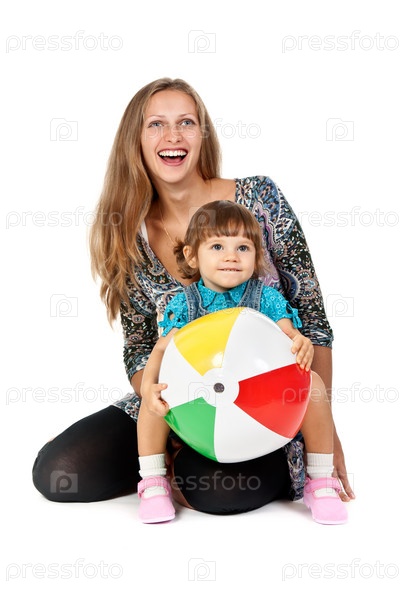 Счастливая мама с маленькой дочерью на белом фоне