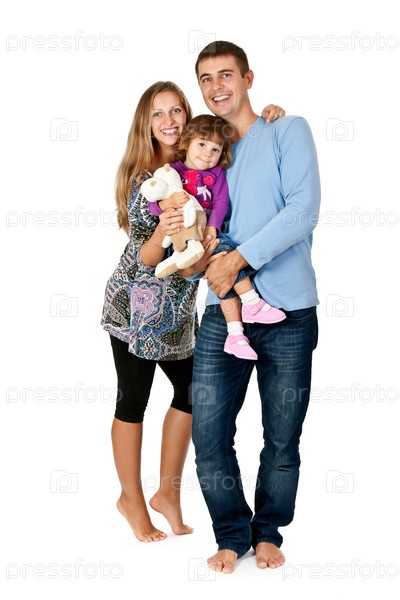 Счастливая семья на белом фоне