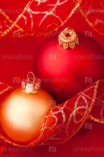 Новогодние шары на красном фоне