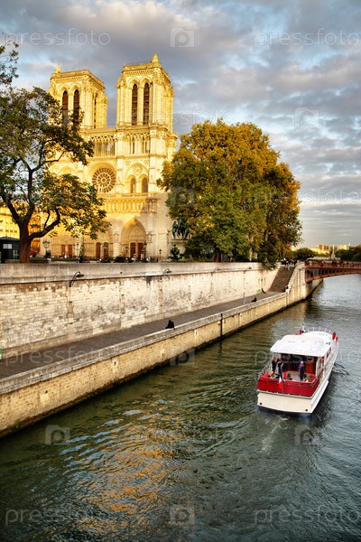 Вид набережной Сены и Нотр-Дам де Пари, Франция