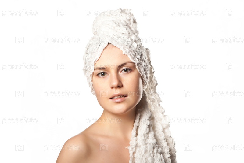 Портрет симпатичной женщины с полотенцем на голове