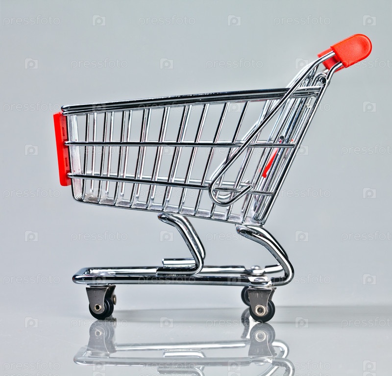 Тележка для покупок на сером фоне