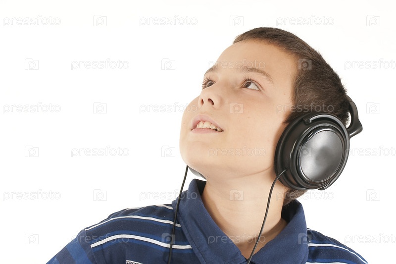 Одиннадцатилетний мальчик слушает музыку в наушниках