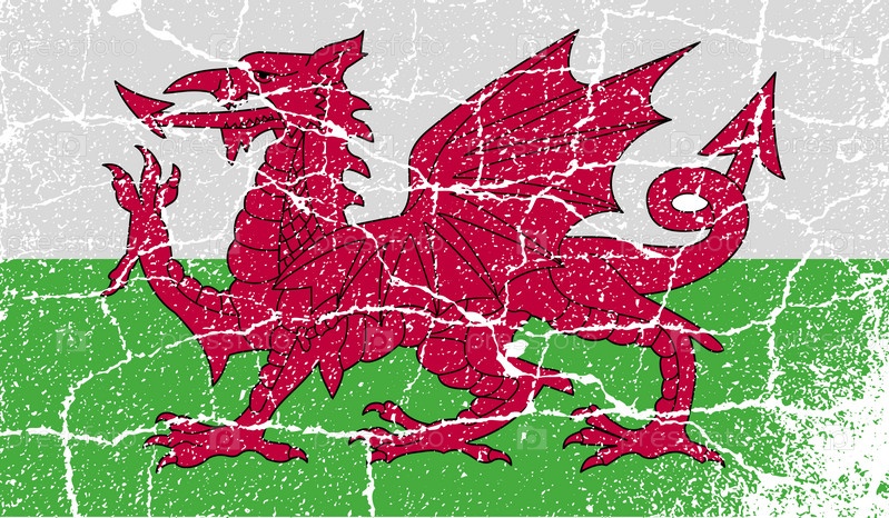 Флаг Уэльса с старой текстуре. Вектор
