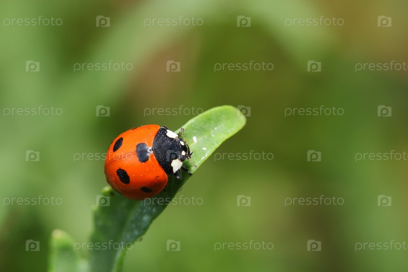 Божья коровка на травинке, макро
