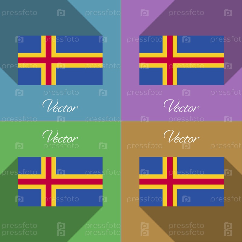 Флаги Аландских островов. Набор цветов плоский дизайн и длинные тени. Вектор