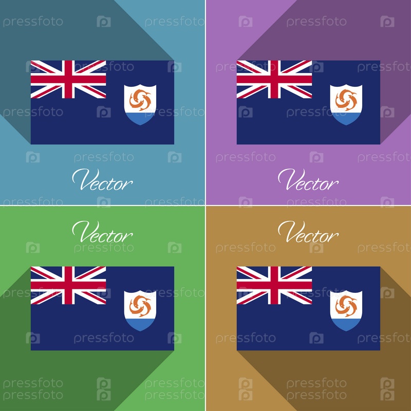 Флаг Ангильи. Набор цветов плоский дизайн и длинные тени. Вектор