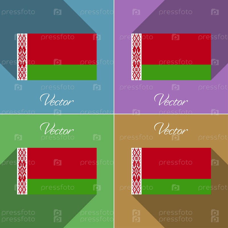 Флаги Беларуси. Набор цветов плоский дизайн и длинные тени. Вектор