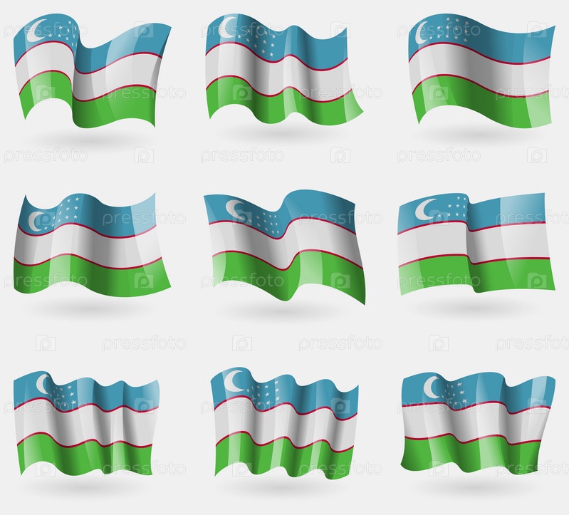 Набор флагов Узбекистана в воздухе. Вектор