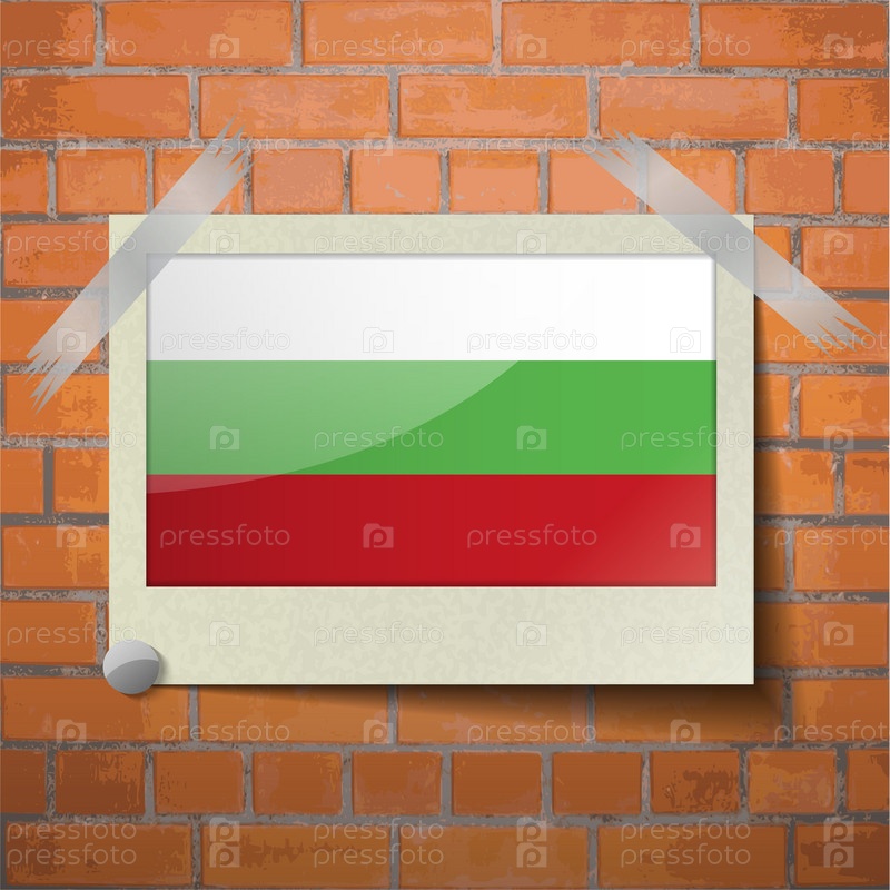 Флаги Болгарии, скотч приклеенный к красной кирпичной стены