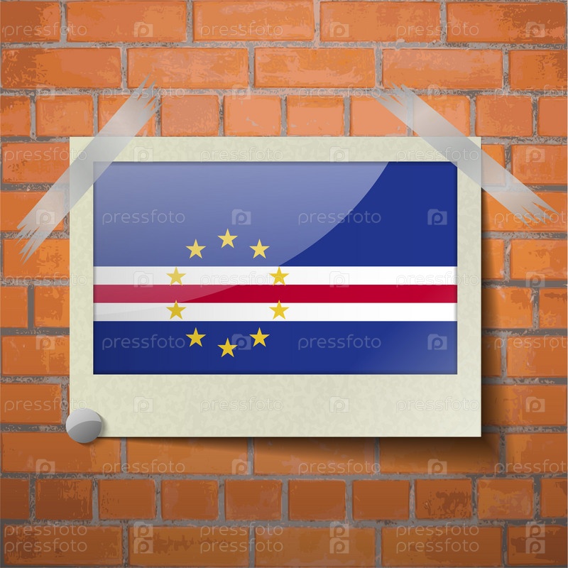 Флаги Кабо-Верде, скотч приклеенный к красной кирпичной стены