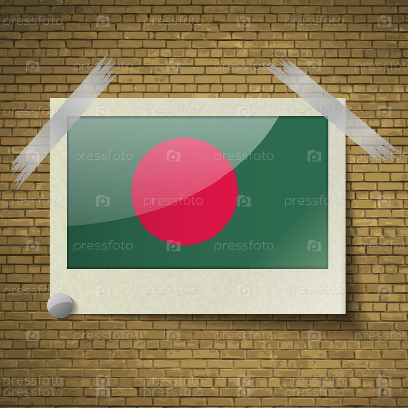 Флаги Бангладеш в кадре на фоне кирпича. Вектор